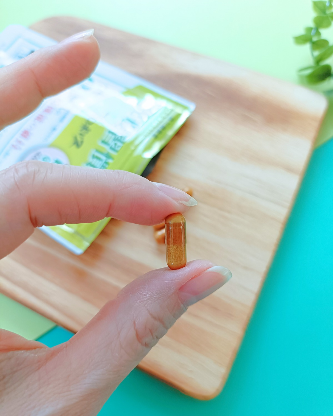 このサプリメント、カプセル状なんだけど、一般的なカプセルのお薬と同じくらいなサイズ感で1cmちょい!