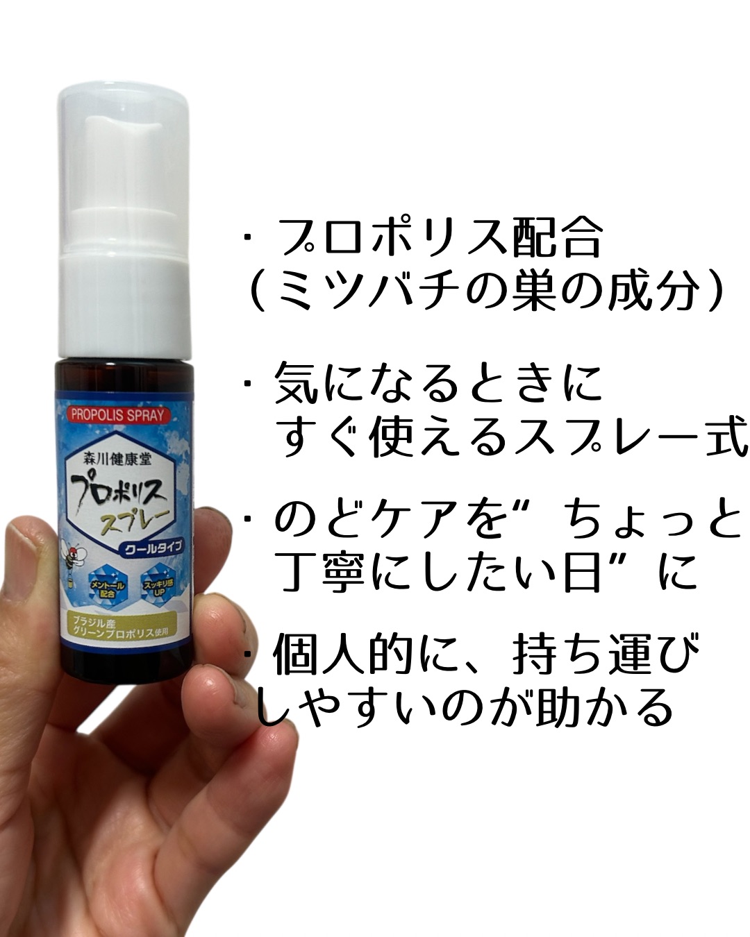 コエタスのモニターキャンペーンでもらった(森川健康堂 プロポリススプレー【クールタイプ】)についての...