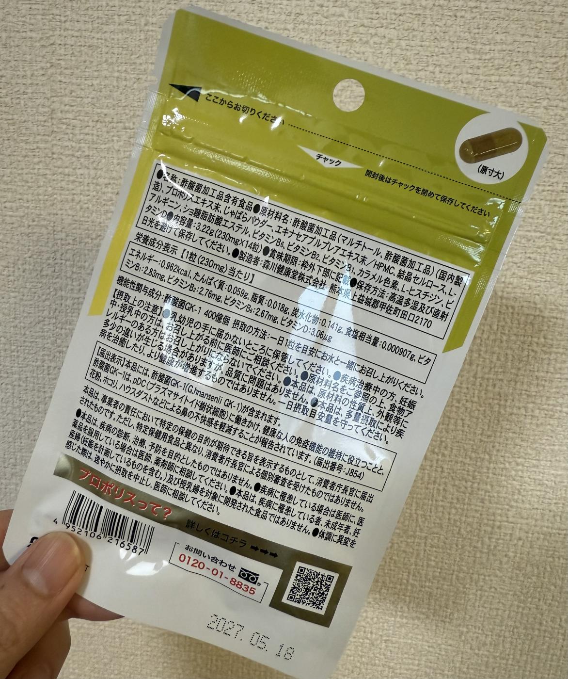 小さなカプセルで飲みやすいですし、飲んだ後、胃の中からプロポリスのニオイを感じます!