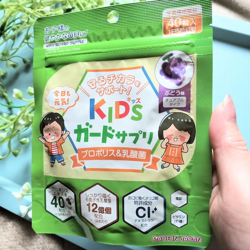 季節の変わり目や、集団生活の中での「守るチカラ」をサポートしてあげたいなと思い、「KIDSガードサプリ プロポリス&乳酸菌」を試してみています。