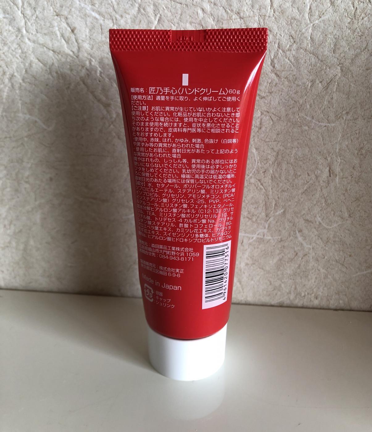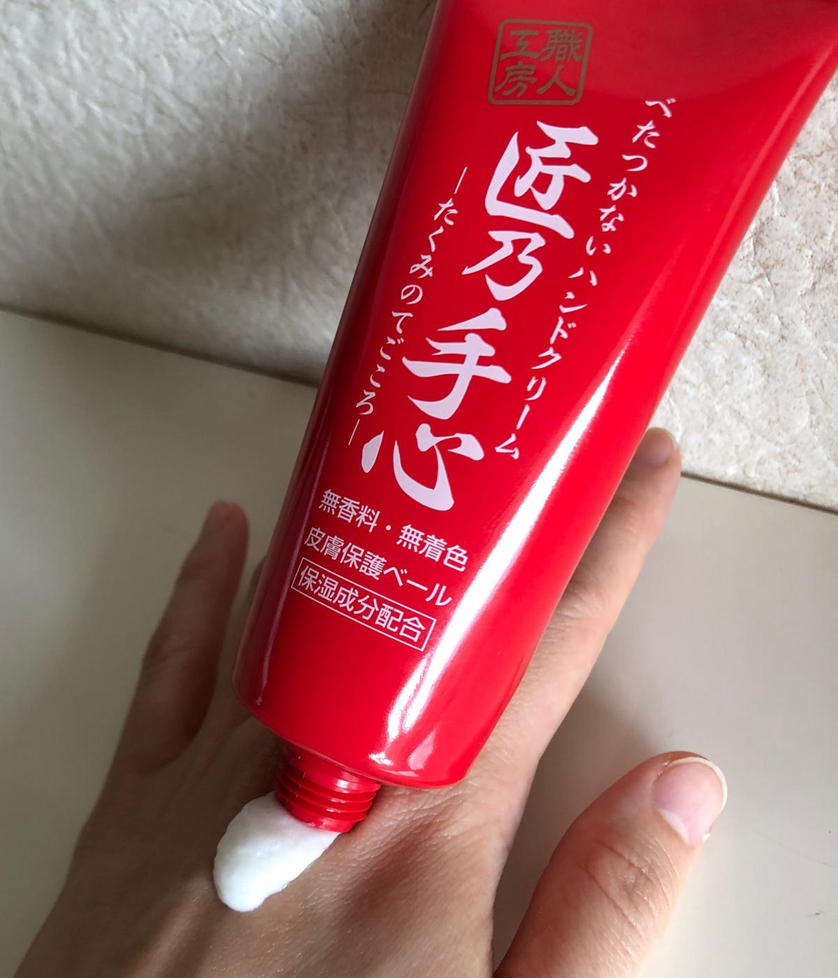 森田薬品工業株式会社さんのハンドクリーム「匠乃手心」 約1cm程度が使用目安で、手のひらや甲に出し...