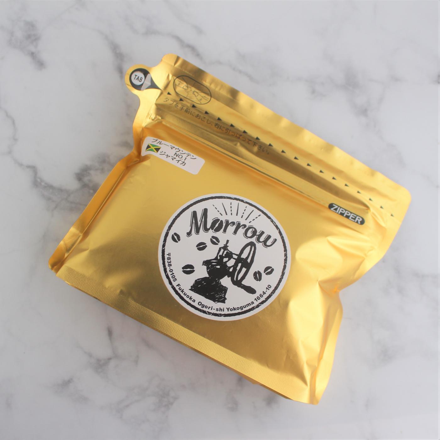 自家焙煎Morrow珈琲 コーヒーの王様 ブルーマウンテン (ストレート) ゴールドに光り輝くパウチ...