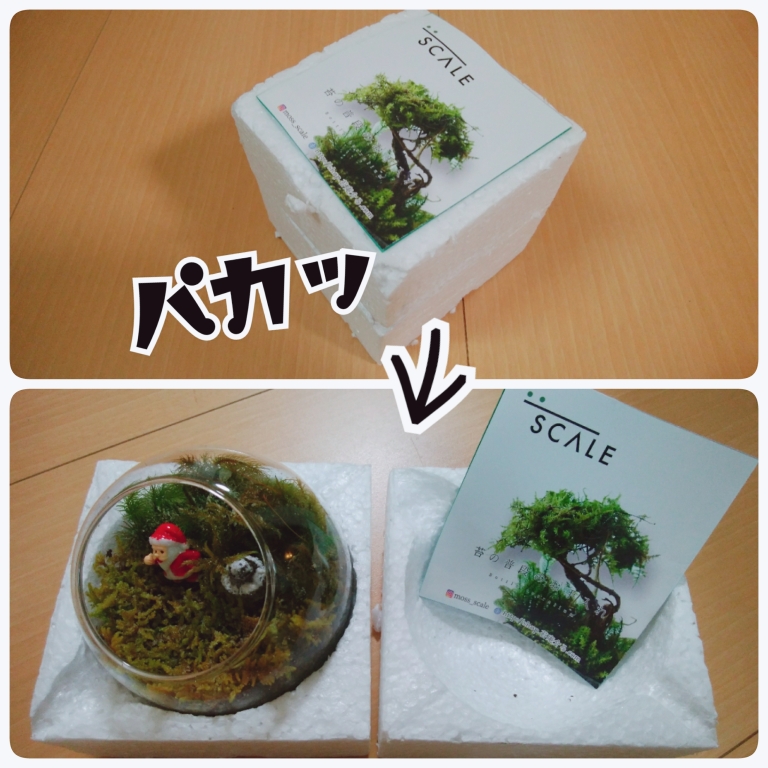 小さいボトルテラリウムの中にサンタクロースがいるだけで、クリスマス気分を味わうことができました。