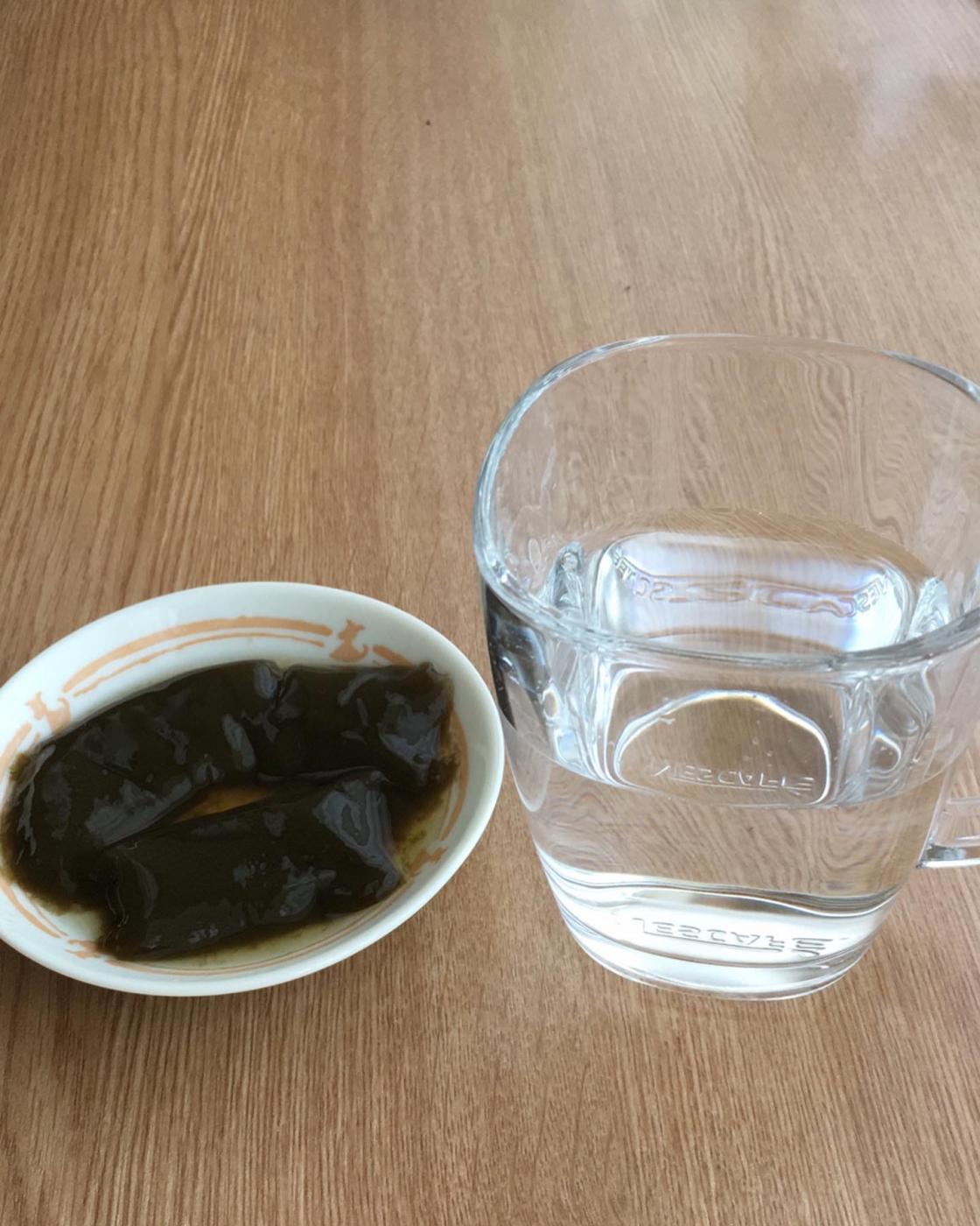 多少、もずくのポソポソした食感を感じたのでお水と一緒に食べることにしました。