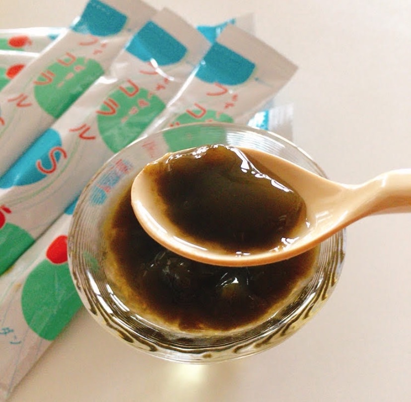 コンパクトなサイズ感のスティックを開封してみると、プルプルとした黒っぽいゼリーです。この色のゼリーは初めてなので、ちょっと驚いてしまいました。まさにもずくそのもののの色ですが、プルプルとしたりんご味のゼリーでとっても美味しいです。さっぱりとしていて食べやすく、クセがないので続けやすそうです。