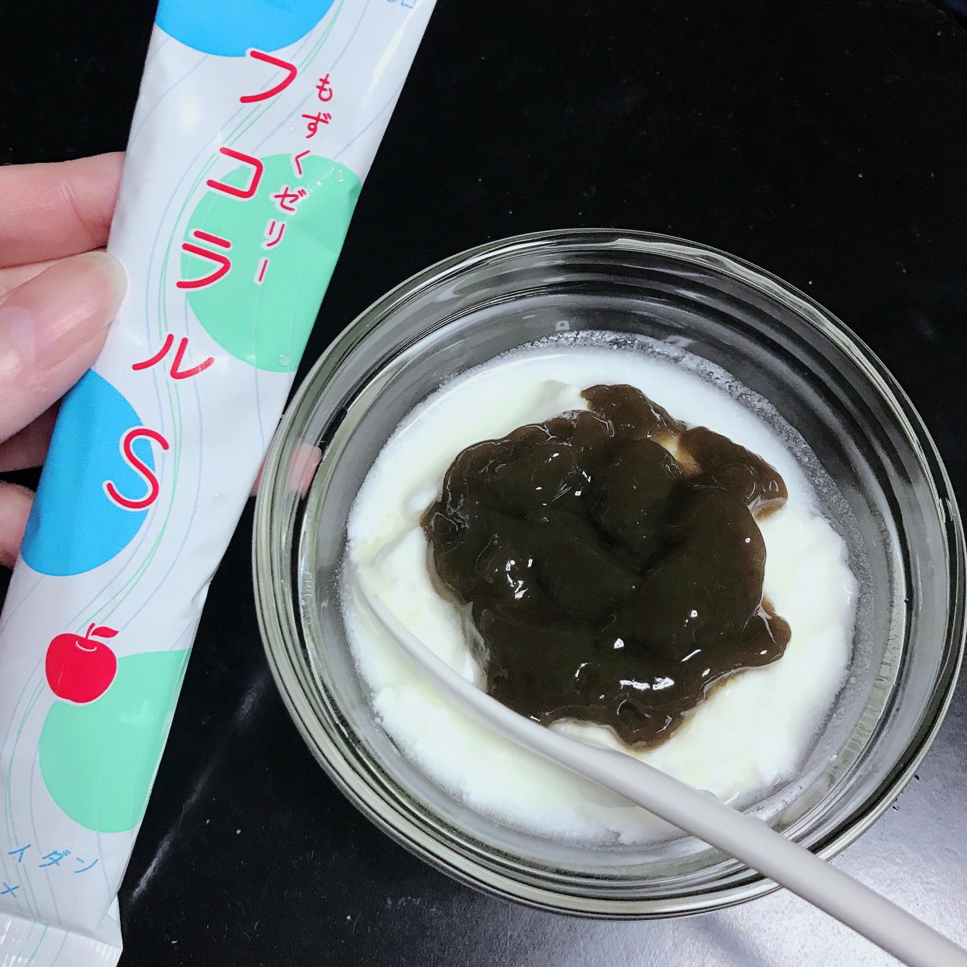 これなら、もずくが苦手な方も りんごゼリーとして食べれちゃう気がします。