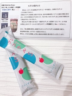 もずくの専門店ならではの加工法で海藻臭が全くなくて、もずくの栄養素をそのままのりんごゼリーに出来てるんです?