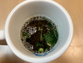 朝ごはんはお寝坊さん?? 私も遅く起きたので、届いたフリーズドライのスープでお湯♨️注ぐだけにした...