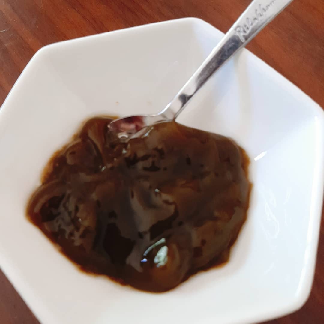 よく見るともずくの海藻っぽい繊維が見えて、色味もまるでもずくそのもの。食感はぷるんとしたゼリーというよりはザラザラしていますが、デザート感覚で美味しく食べられます。