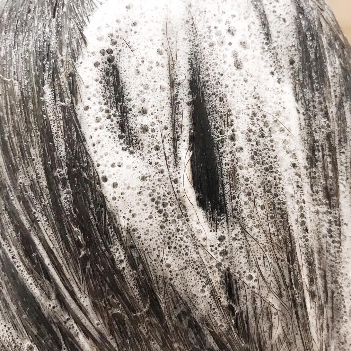 泡立ちはやや控えめですが、弾力のある泡なので頭皮をじっくりマッサージしてもヘタレない。