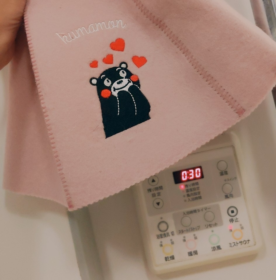 くまモンのサウナハットを使用してみました!写真で見ていたよりも全然可愛いじゃないのー♡ピンクも気分があがりますね!家のミストサウナでこのくまモンのサウナハットつけました!まず、サウナで頭を守る帽子があるなんて初耳でしたので驚きでした!たまにぼーっとしてるとほんとに頭が暑くなってふらふらする時ってないですか??これをかぶれば頭が守られます!羊毛100パーセント、厚みも3mm凄いですよね☆型崩れしにくく、洗濯もできますので衛生的!体があたたまる前に頭がのぼせてしまい脳が危険信号をだすため、このハットをかぶることによりいつもよりも長くサウナを楽しむことができます(*^^*)熊本県大人気みんなの知ってるくまモンと一緒に、銭湯、温泉、ホテルの大浴場を楽しみましょう\(^o^)/