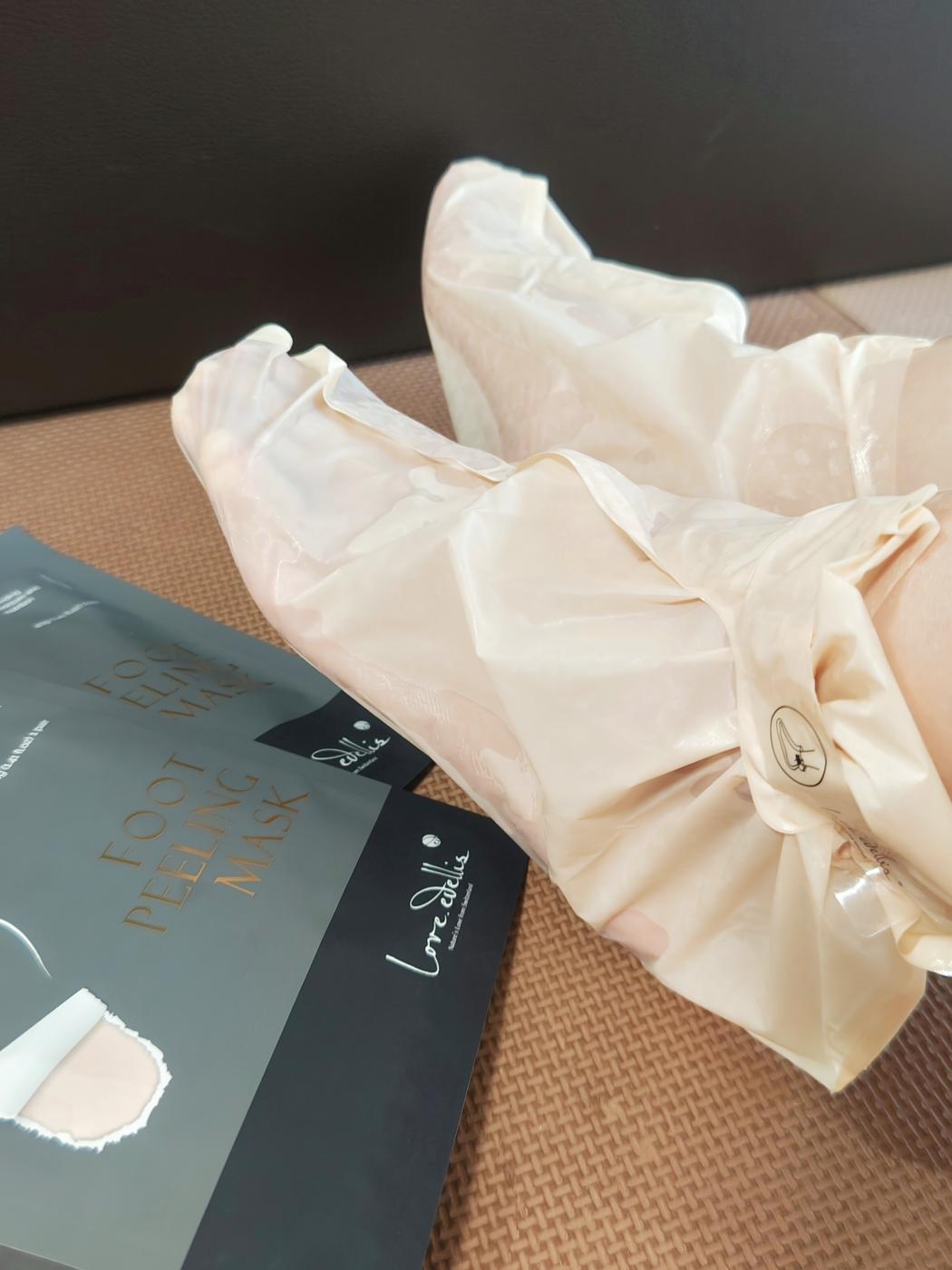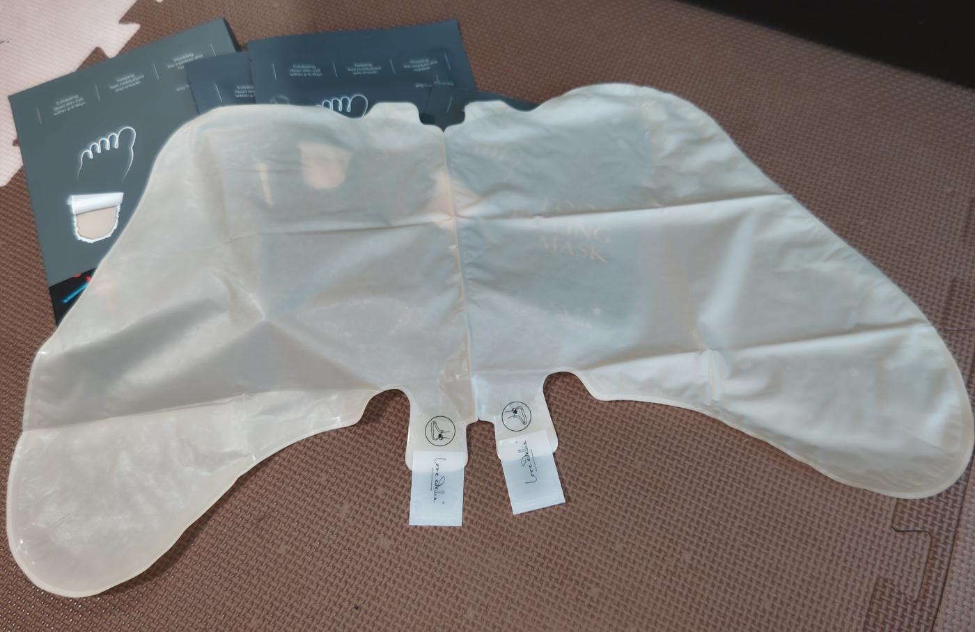 他と違って嬉しいなと感じたのは、こうして靴下のような形の袋だから、かかとだけじゃなくて足裏全体に液を浸すことが出来るので、全体が綺麗になるの。「かかとケア」はよく謳われているけど、足裏全体が綺麗になる製品って珍しいんじゃないかなぁ?