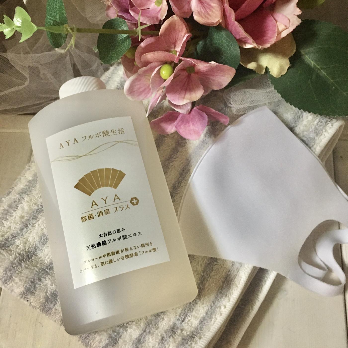 天然のビタミン、ミネラル、アミノ酸、タンパク質、酵素類などを豊富に含んだ約8千年前の有機土壌を原料に抽出された天然濃縮フルボ酸エキス『AYA 除菌・消臭プラス』
