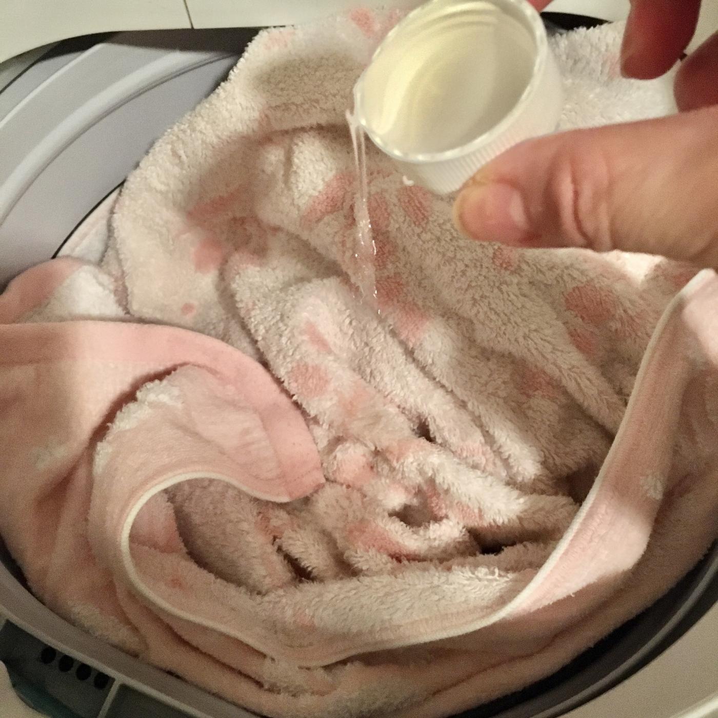 洗濯機に洗剤とともにキャップ2杯くらいAYA 除菌・消臭プラスを入れて洗濯しています。