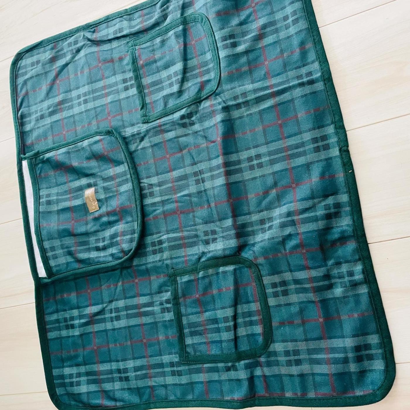お出かけの時に便利な、収納袋一体型のマルチケットで、ポケットが2つ付いているので、冬はあったかカイロ、夏はひんやり保冷剤などを入れて使うことが出来る✨