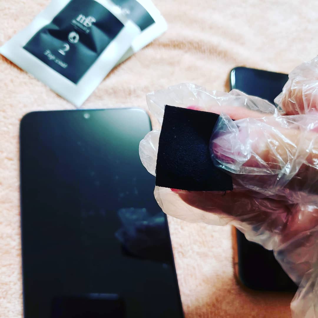 液体で液晶画面を抗菌ガラスコーティング…?と半信半疑ながらも、家族全員分のスマートフォンの画面を施工してみました!