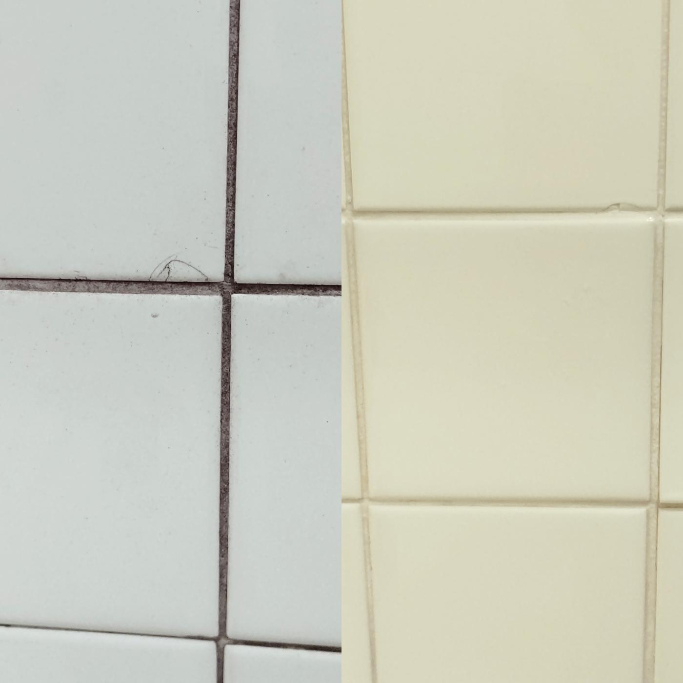 我が家の恥を晒すようで恥ずかしいのですが、放置しているタイル目地のカビ汚れがスッキリきれいになりました(写真3枚目を見てね)。