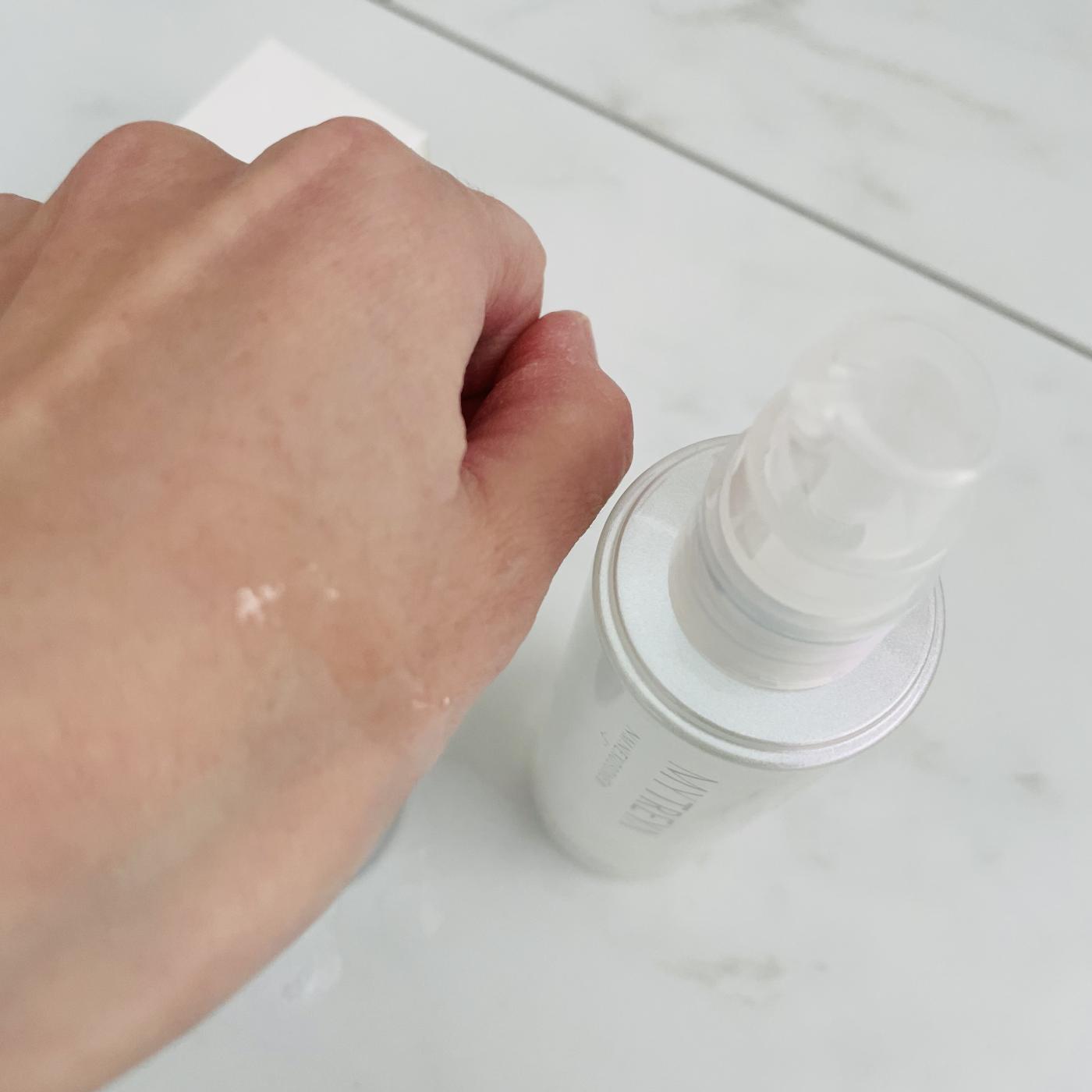 さらっと寄りのほどよいとろみ感と、みずみずしさのあるローションはスッと伸びて肌なじみが良いです。