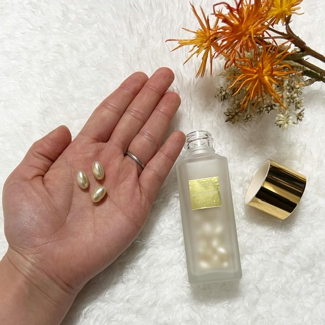 オシャレな瓶にたっぷり入ったキレイな真珠🐚 手に取って近くで見ても真珠に見えるけど… これ実は...