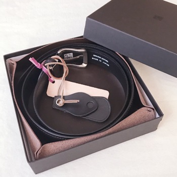 ベルトと一緒にオリジナルの携帯靴べら、本革小物ケース付きでさらに旦那さんがすごい喜んでいたよ。