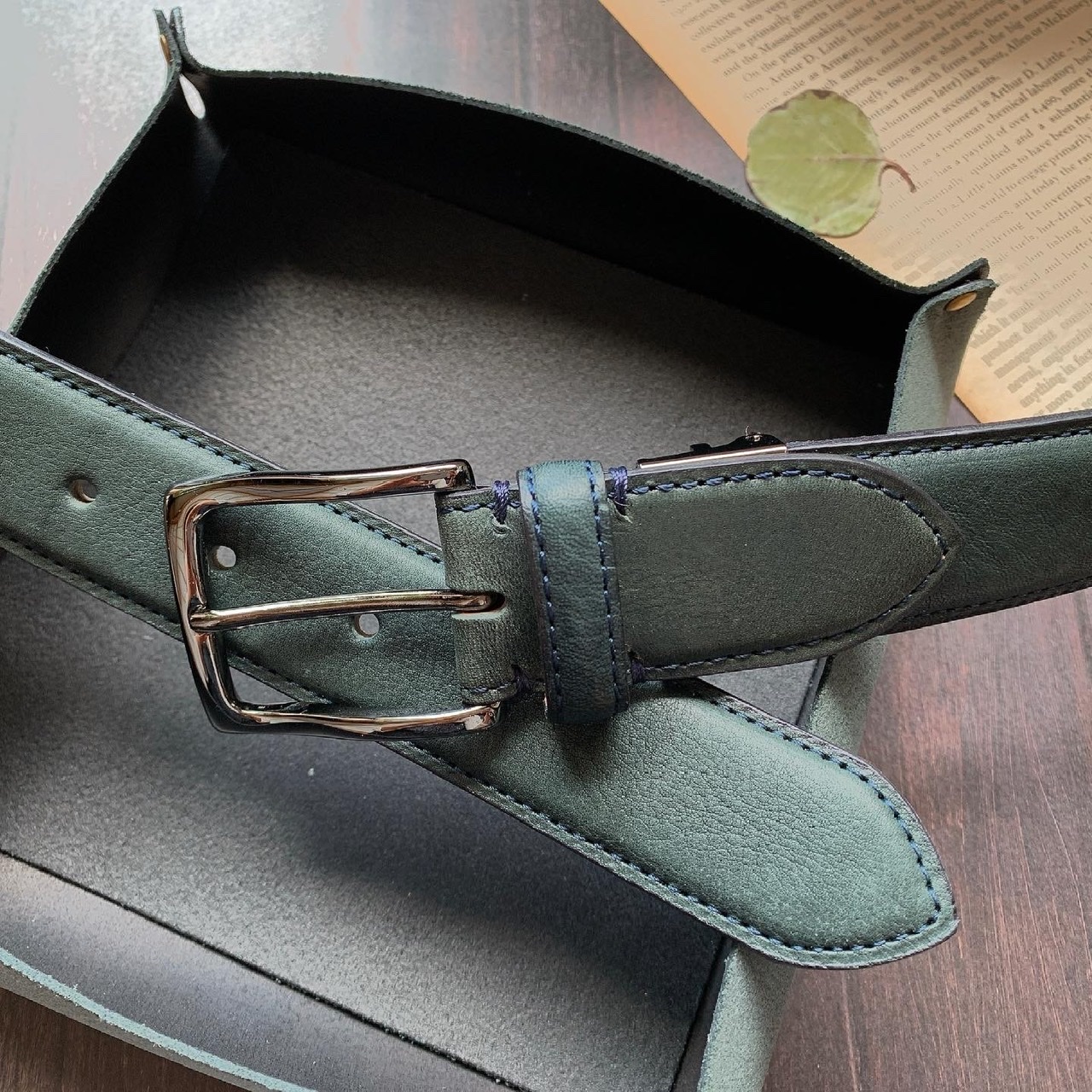 主人が出勤時に毎日愛用中の《寛ぎリラックスレザーシリーズ》栃木レザー オイルシュリンクベルト