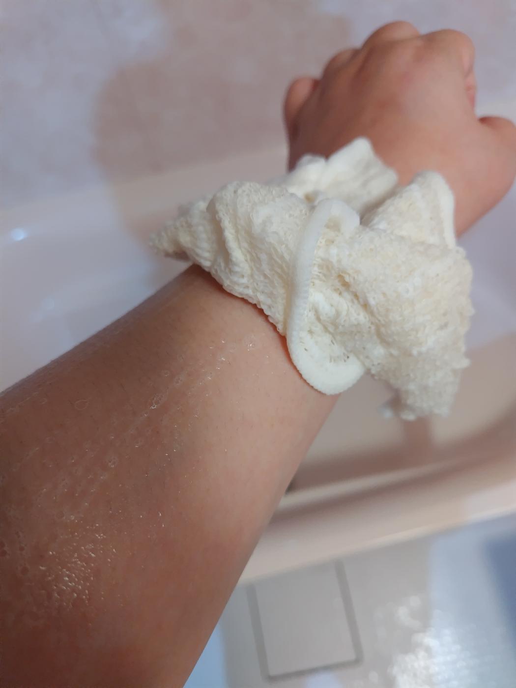 ちょうど良い刺激感があって、背中のかゆいところとか洗うとすごく気持ちが良かったです。また、伸び縮みもしやすい素材なので背中も楽に洗えました。