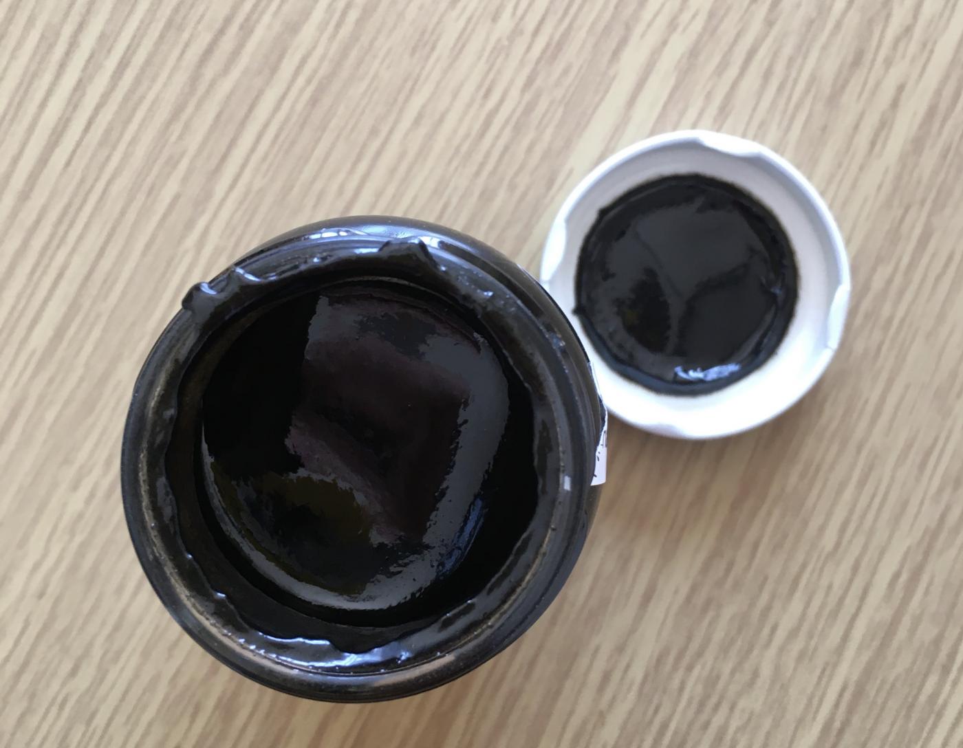 蓋を開けてみると、真っ黒でとろっとしたジャムです。