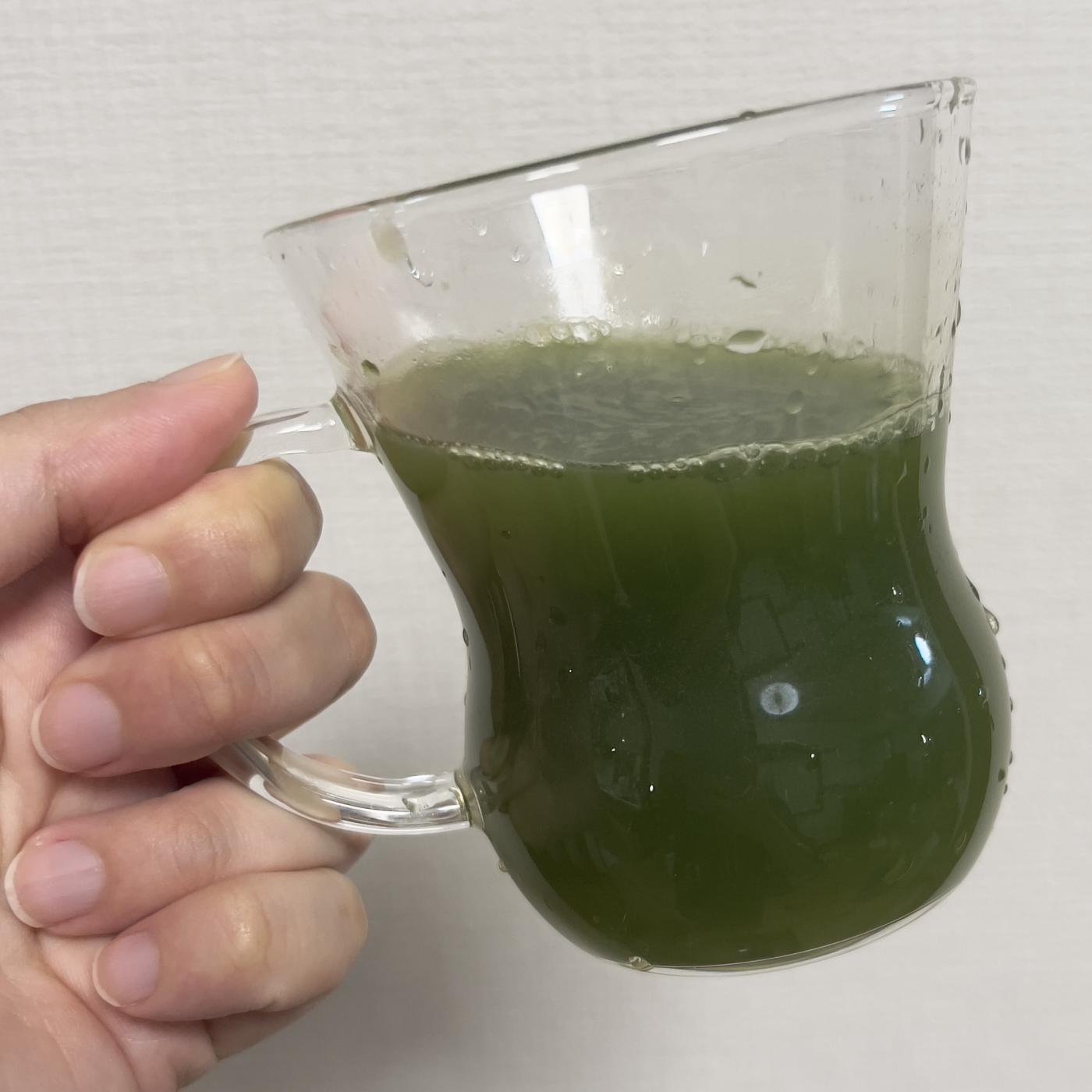 溶けやすく、フルーティーな風味が強くて青汁特有の苦さが少なめで飲みやすく、するりと飲めました!