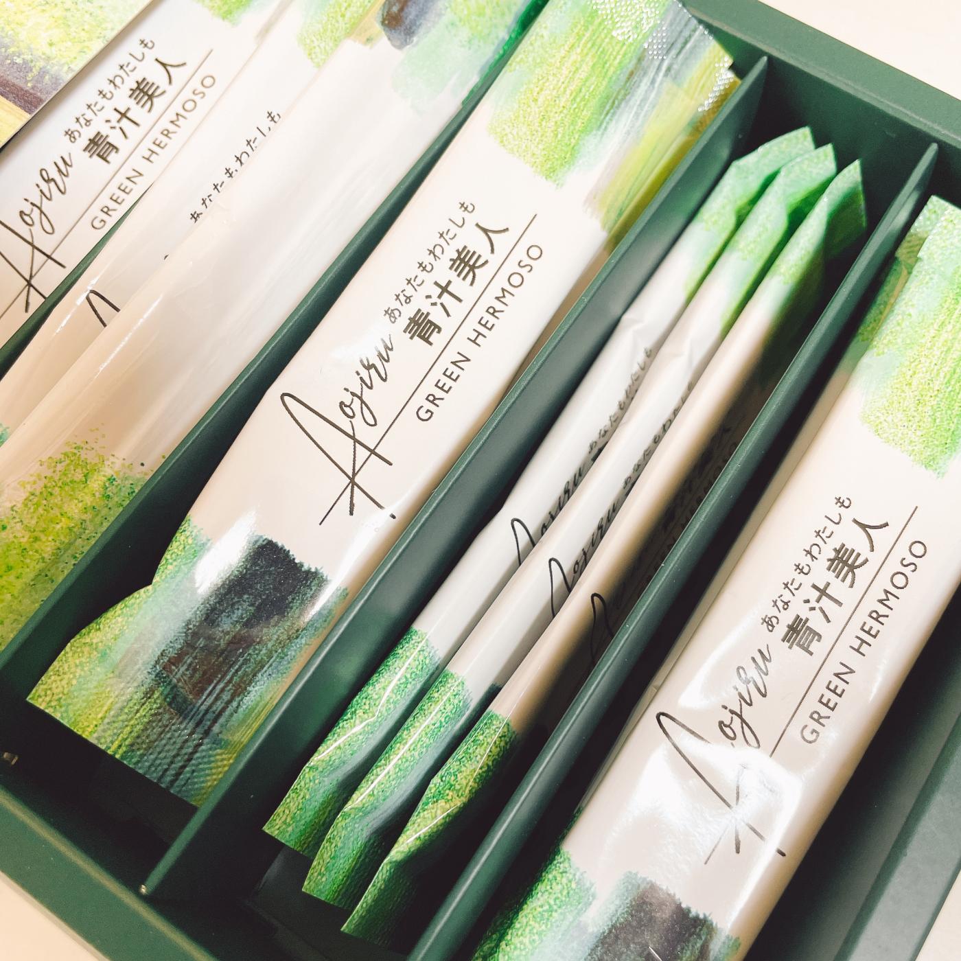 こちらの青汁は青汁美人という商品でとってもお洒落なデザイン。箱いっぱいに1杯分づつスティックで入ってました。