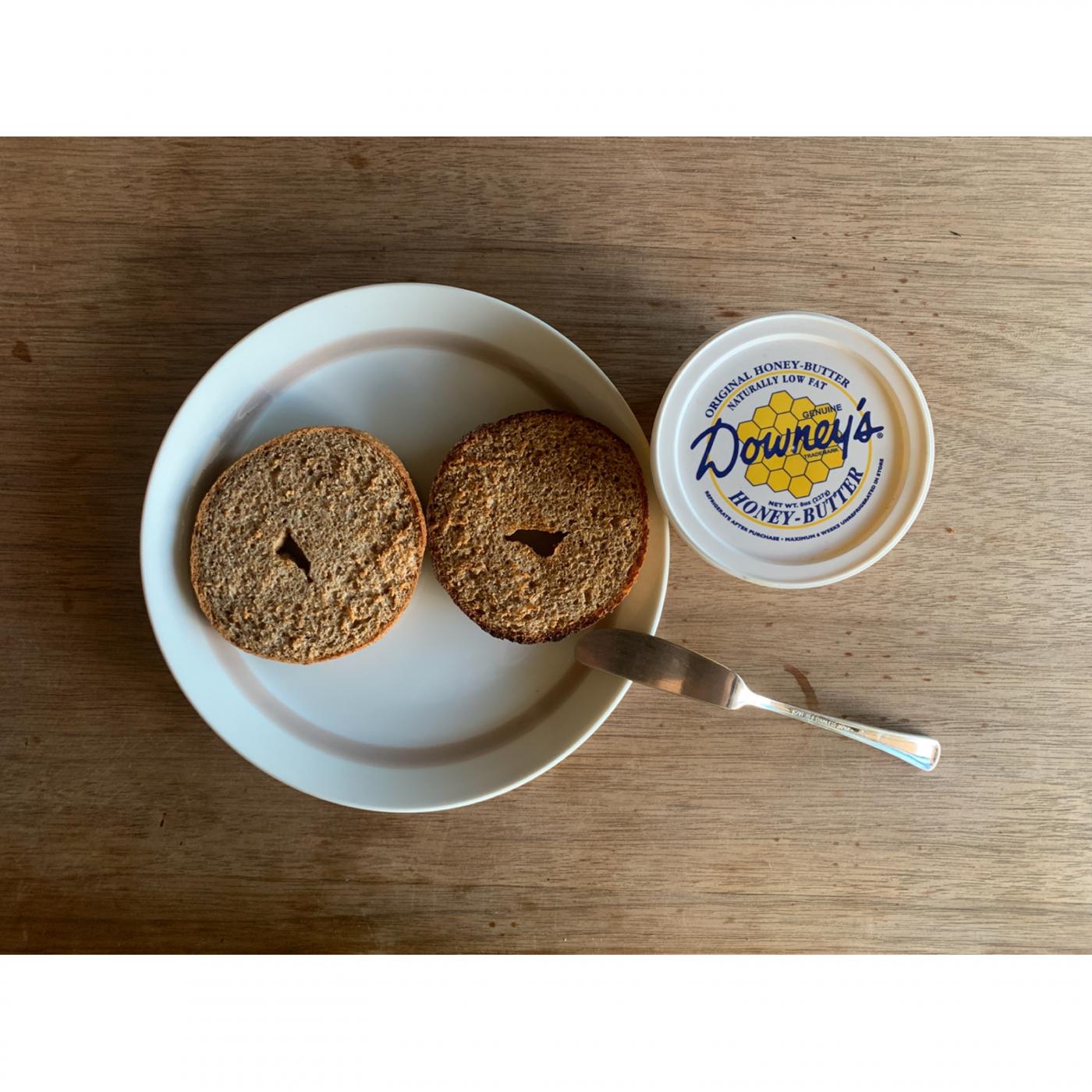 子どもには、ベーグルを半分にきり、トースト後メイプルハニーバターをつけて食べさせてます。