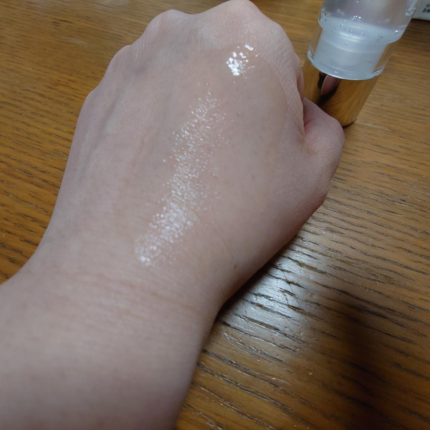 透明のジェルのような見た目で、肌になじませるとすっと吸い込まれるような感覚です。