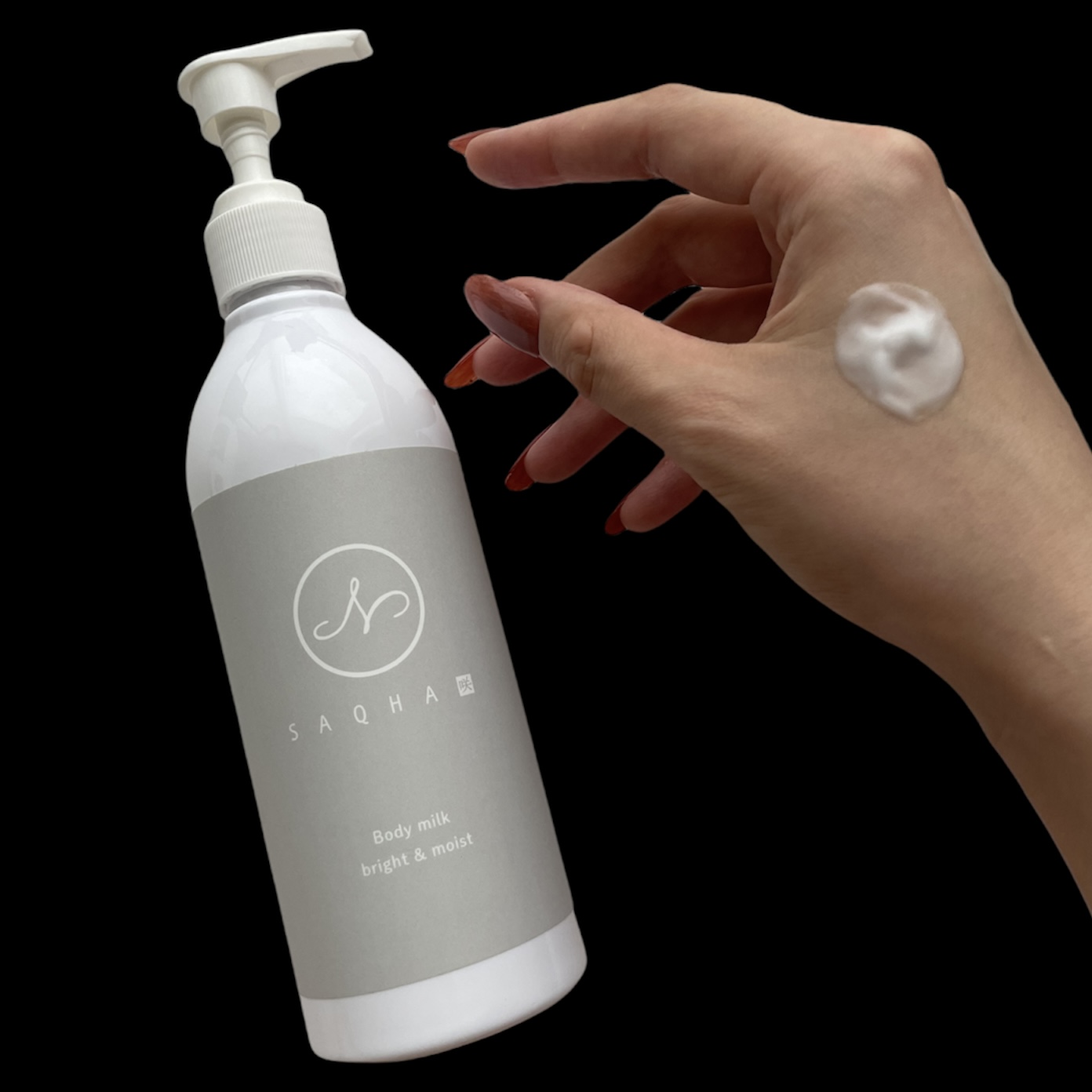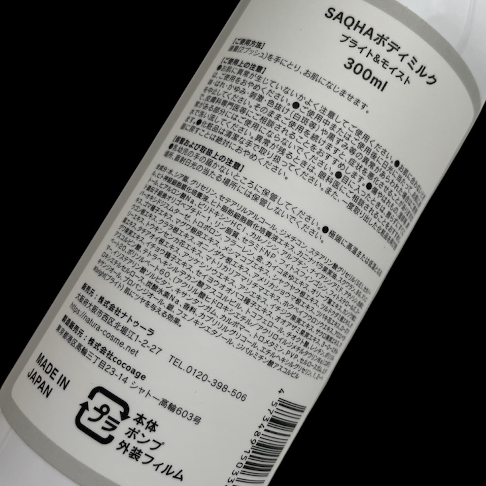 シンプルな容器、そして大容量の咲白SAQHAのボディーミルク?