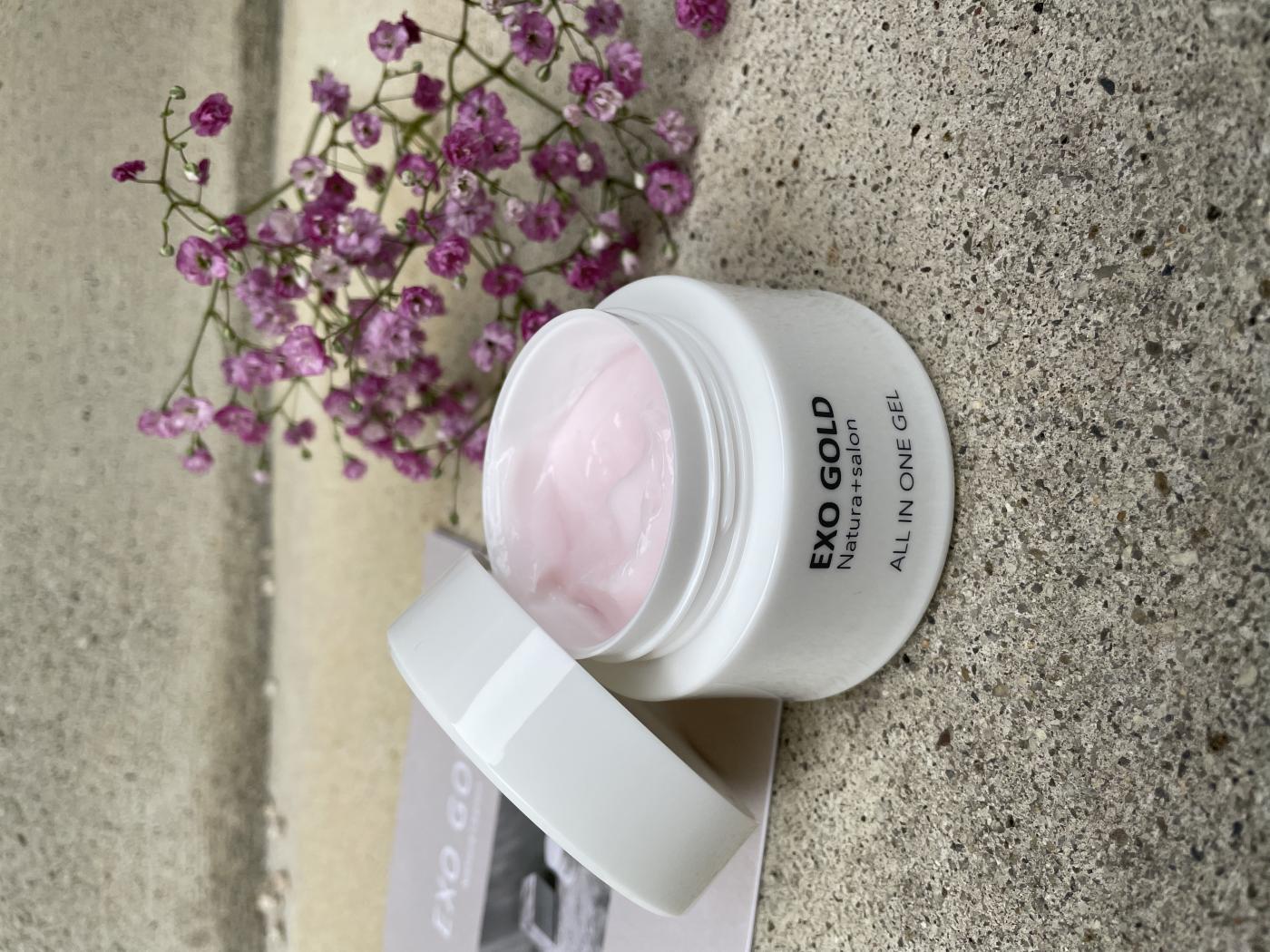 EXO GOLD オールインワンジェルは、金をお肌のキメより小さい5ナノサイズに微細化してるから、淡いピンク色のテクスチャーになっているそうですよ💕