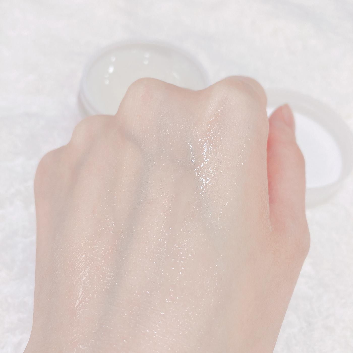 プルプルしたテクスチャーのジェルで、伸びが良くヒンヤリ気持ちいい使用感。