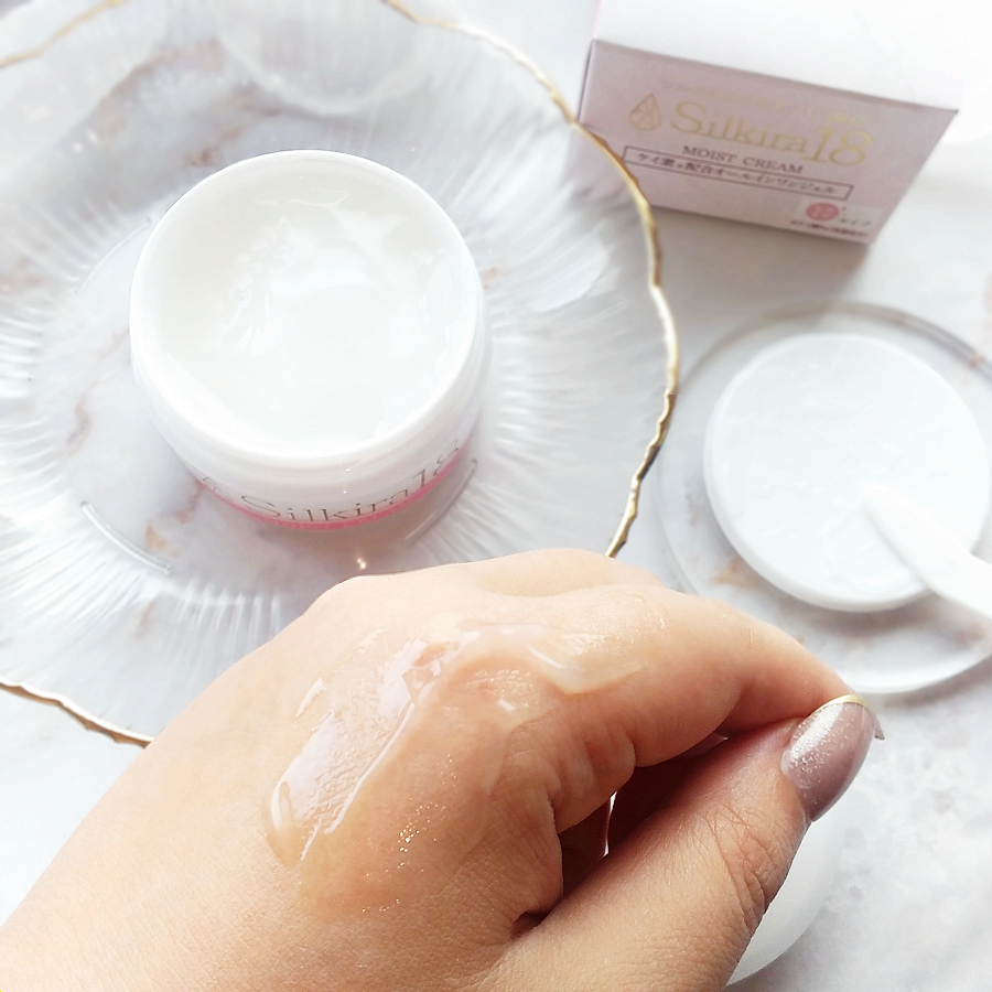 ジェルクリームのようなテクスチャーです。なめらかで伸びが良く、スルスル伸びてお肌になじみます。