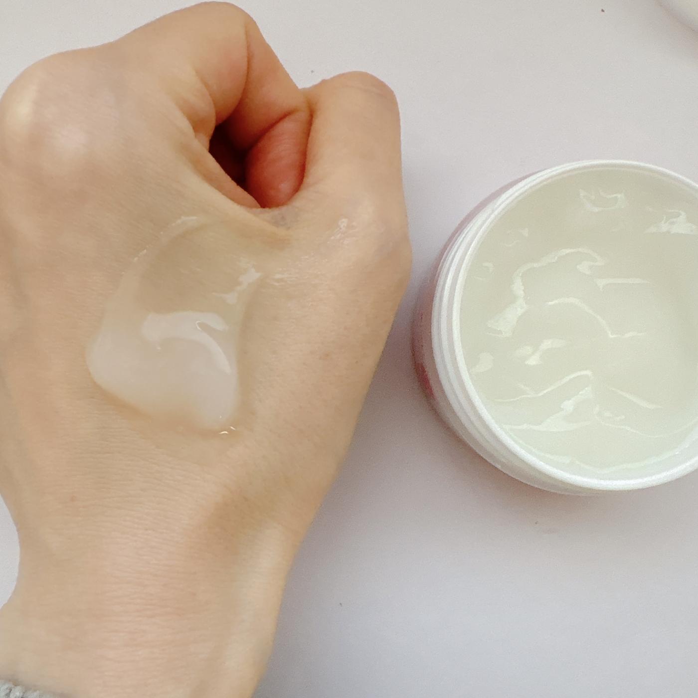 テクスチャーはジェルというとベタつくイメージがありましたが、これはみずみずしくて軽やか!肌に乗せるとスーッと伸びて、香りはほとんどなく、どんな時でも使いやすいです。