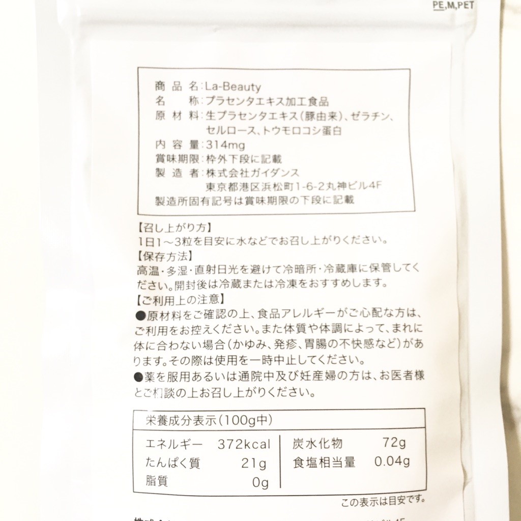私はプラセンタのサプリメントを試す時、結構重視しているのがプラセンタ末の配合量だったりするんですけど、La-Beautyに関してはプラセンタの量を記載しているところがありませんでした。