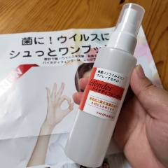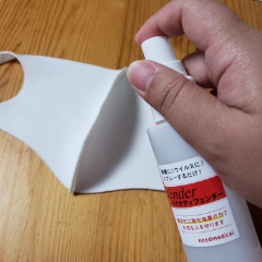 使用後のマスクには菌やウィルスが付着していることもあるそうなので、朝出掛ける前とお昼休みに吹きかけてます。
