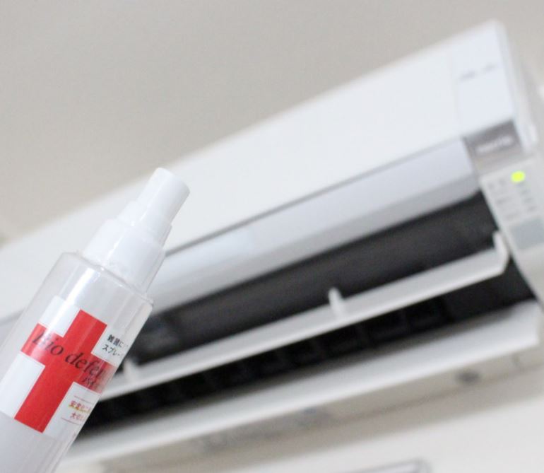 空間除菌も可能ということで、エアコンに直接吹きかけて、風で飛ばしてみました。
