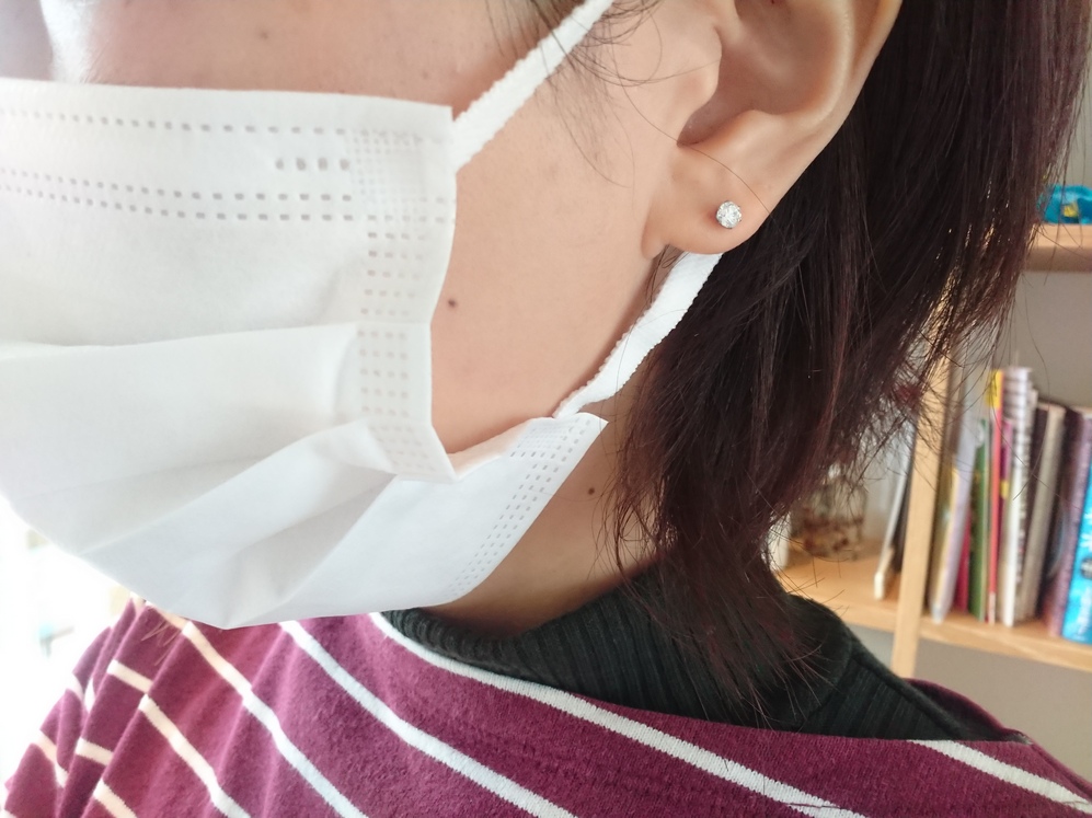このご時世マスクをつけることが多いと思うのですが、そんなマスクの白さに負けないくらい本品は耳元で輝いています。