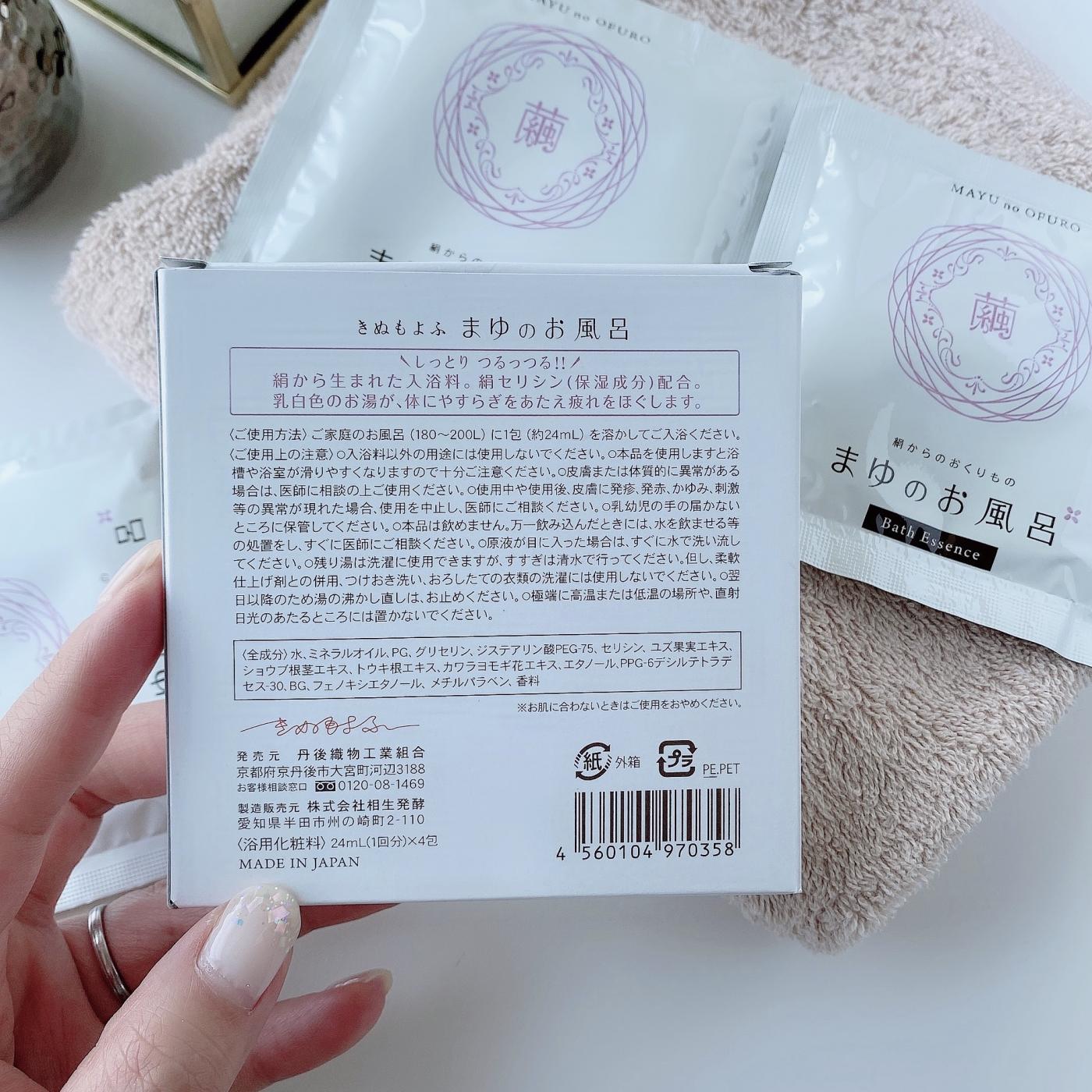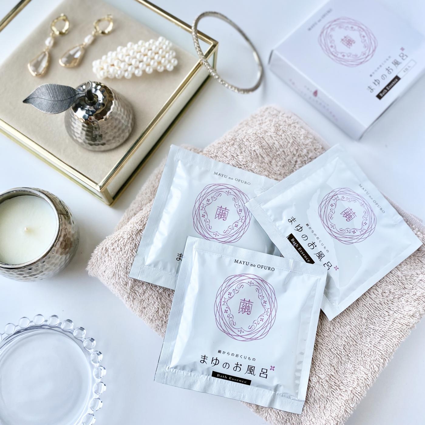 絹から生まれた入浴剤。きぬもよふ「まゆのお風呂」をお試しさせていただきました。 シルクの原料に含...