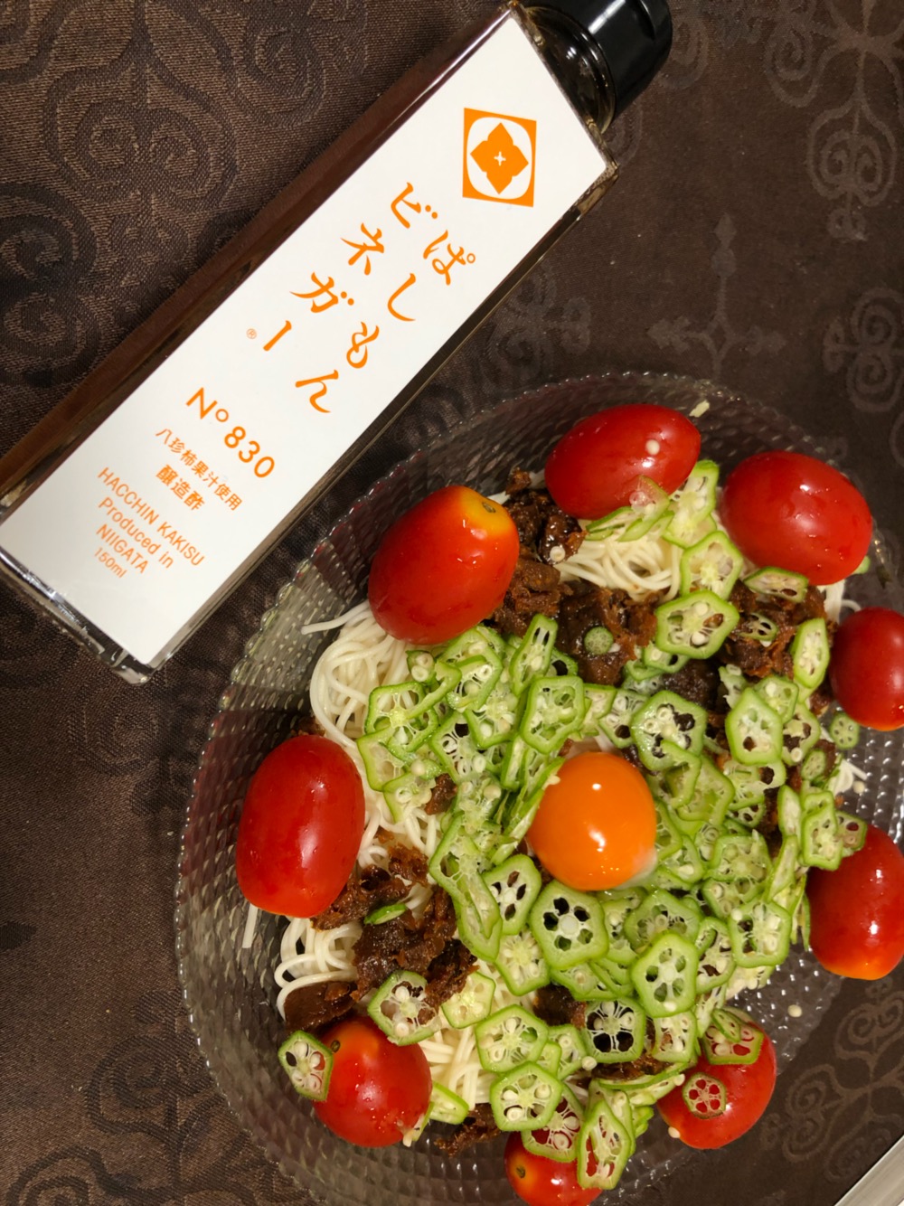 新潟県特産「八珍柿(はっちんがき)」の果実酢を使ったぱしもんビネガーはさっぱりしてて素麺にぴったりでした。