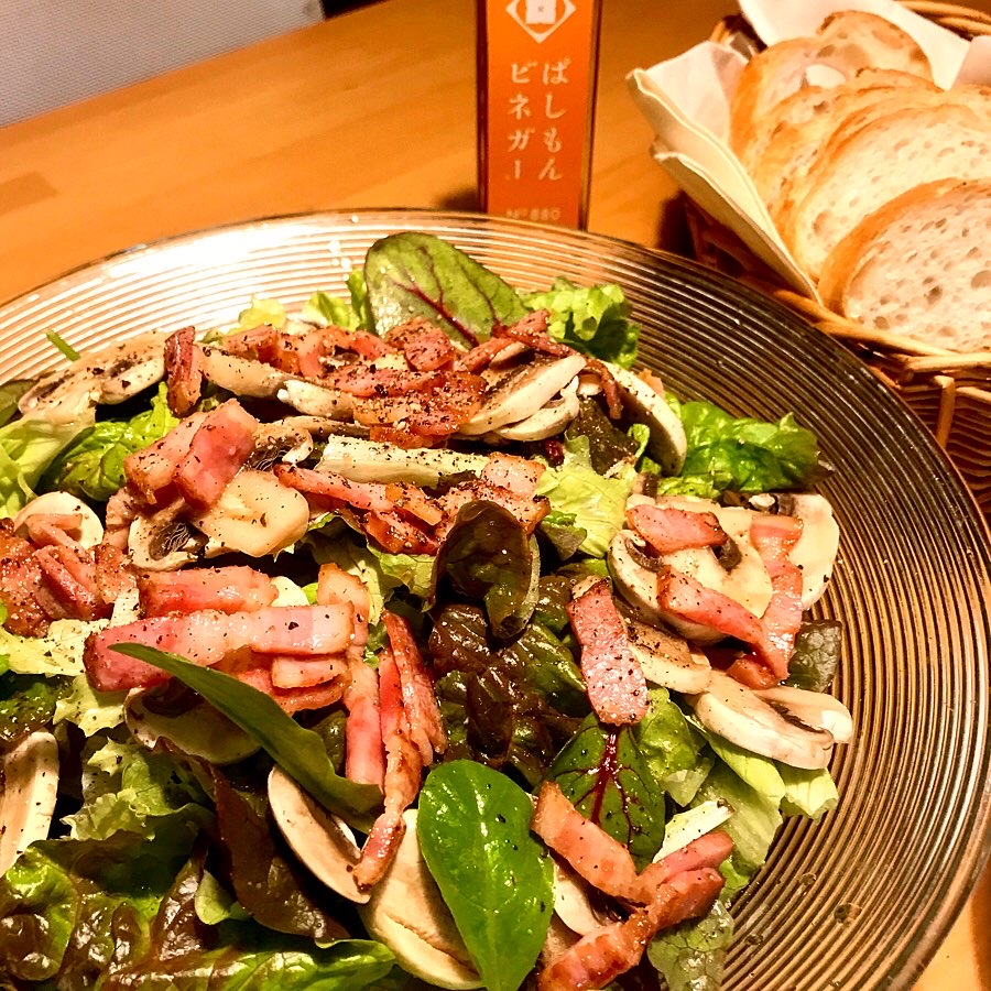 でもこのドレッシングはベーコンを炒めたフライパンにそのまま柿酢を入れて作るのでベーコン風味のドレッシングになり野菜の青臭さが気にならないのだそう。