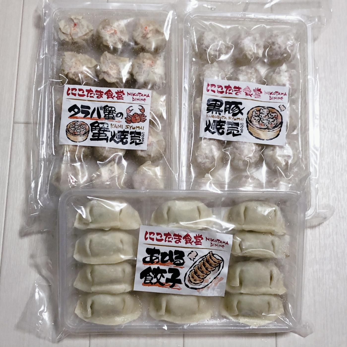 🌿 あひる餃子12個、黒豚しゅうまい15個、たらば蟹しゅうまい15個のセット。 創業28年の中華料理「あ...