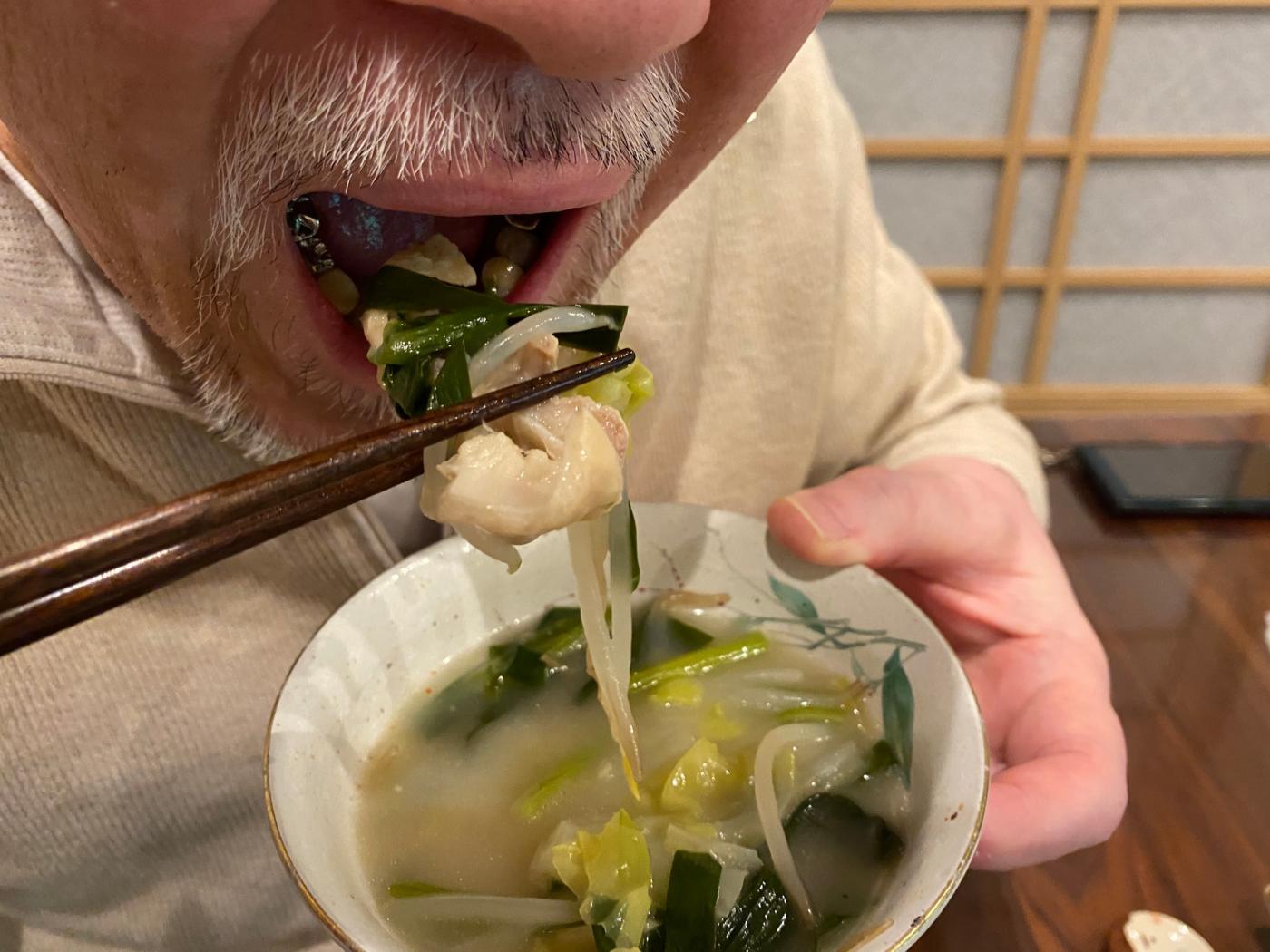 鍋には豆腐、白菜、ねぎ、もやし入れましたがよく染み込む♪