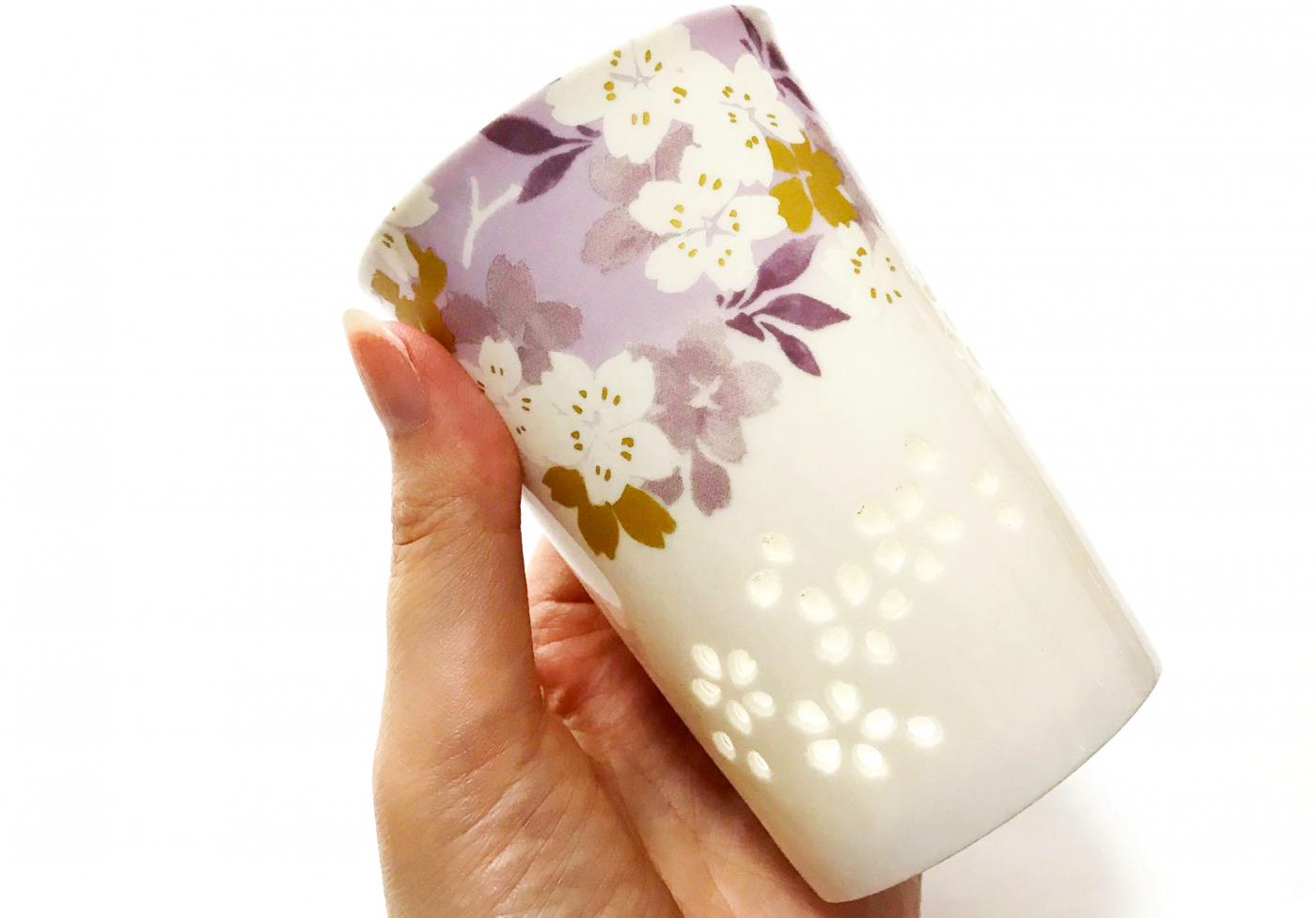 透かしの部分から注いだ飲み物の色が透けて桜がその色に染められてすごく涼しげ
