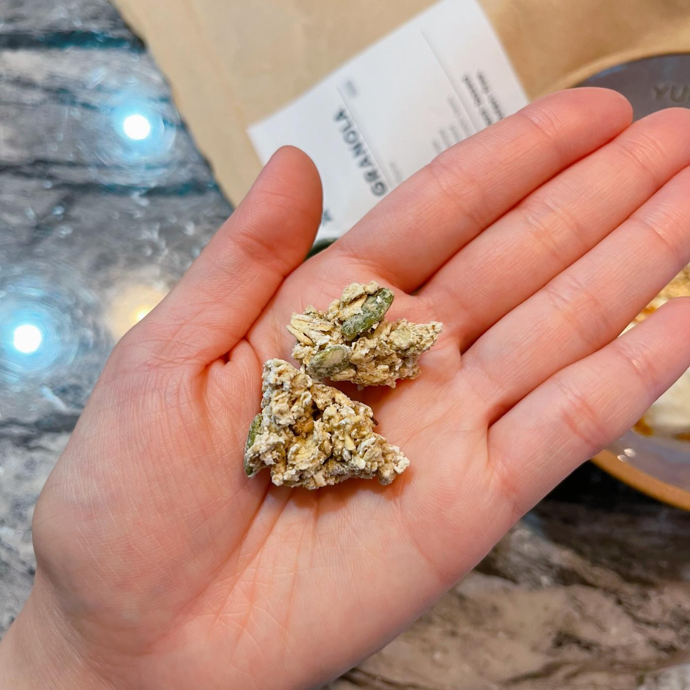 実際にそのまま食べてみましたが、オーツ麦やパンプキンシード、アーモンドなどがゴロゴロ入っていて食べ応え抜群◎