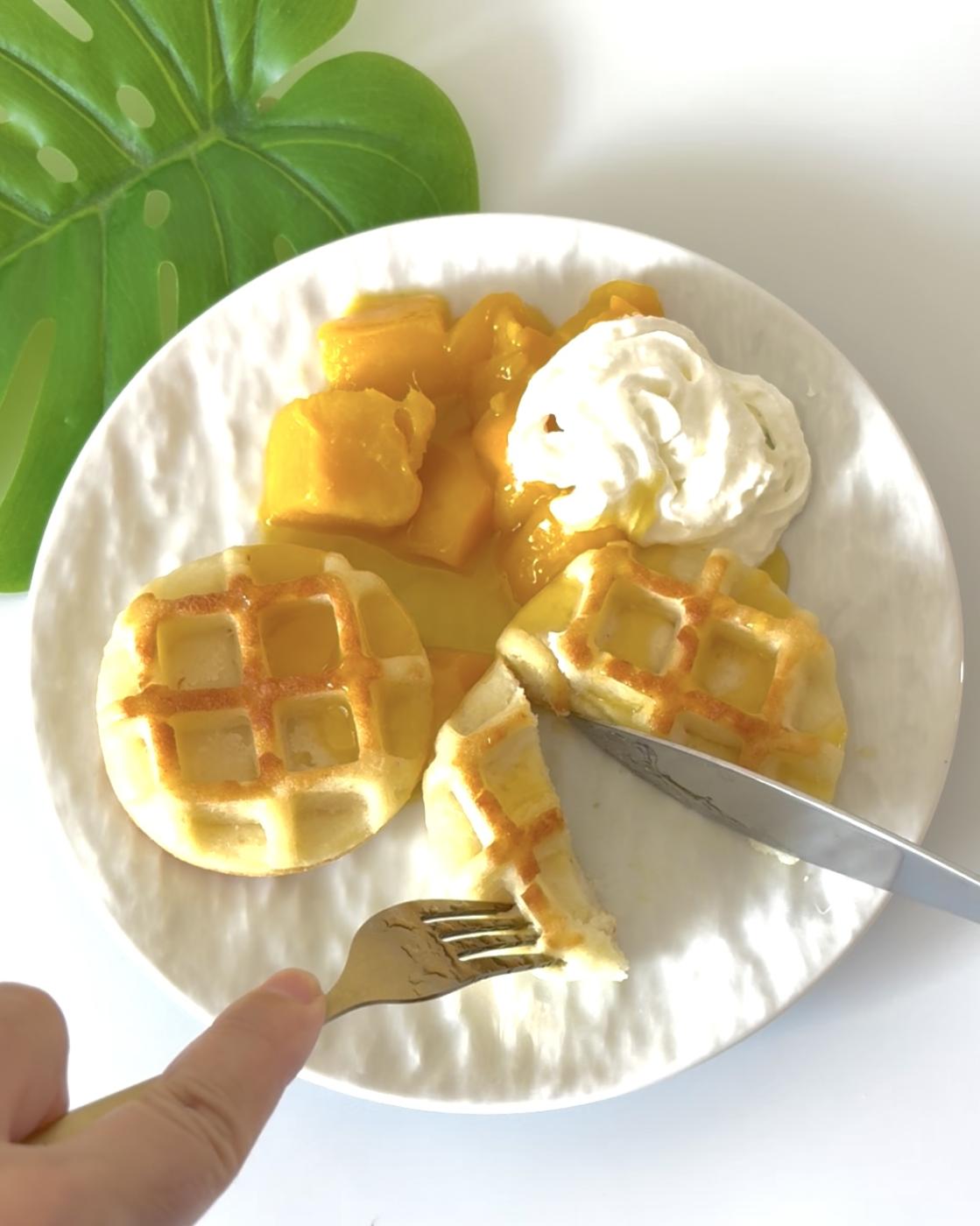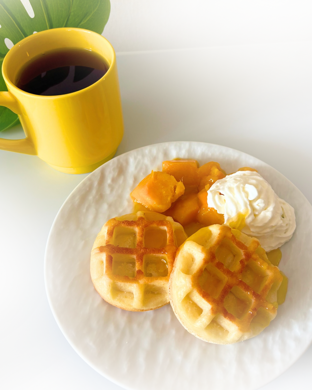カフェ風の甘いマンゴー系にアレンジしましたが、ハチミツやメープルシロップ×バターなんかでも美味しそうですし、海外風ベーコン×メープルシロップなどの食事系にもいいなと思いました◎