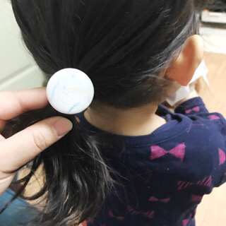 実はコレ、娘がお絵かきしたイラストで作ったヘアゴムなのです!