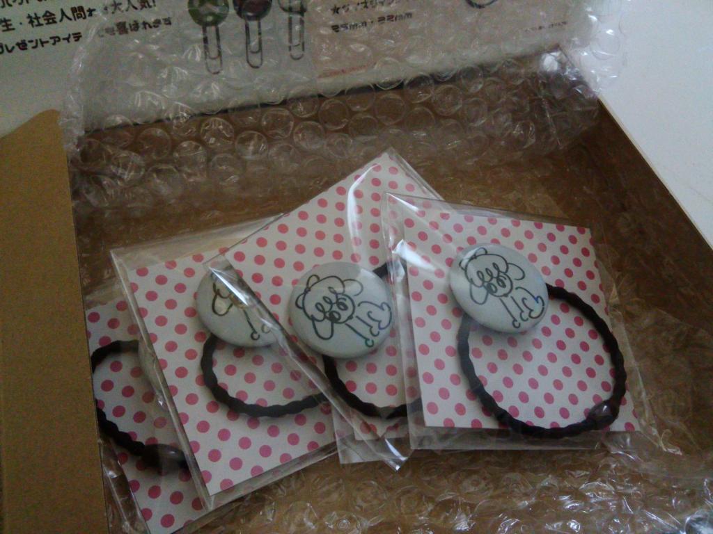 缶バッチのようなかんじで、ゴムのカラーも選ぶことができます。文房具を止めるのに使ったり、手帳を止めるのに使ったりもできます。